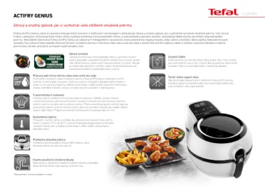 pokrmu. Mimořádně všestranná fritéza ActiFry Genius je vybavena 9 inteligentními nastaveními, která automaticky regulují teplotu, dobu vaření a míchání, takže zajišťují dokonale křupavé