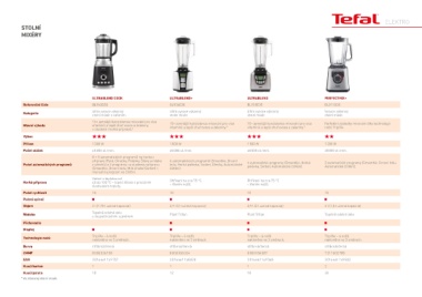 přípravu (Pyré, Omáčky, Polévky, Šťávy a mléko 6 automatických programů (Smoothie, Drcení 4 automatické programy (Smoothie, Horká 3 automatické programy (Smoothie, Drcení ledu,